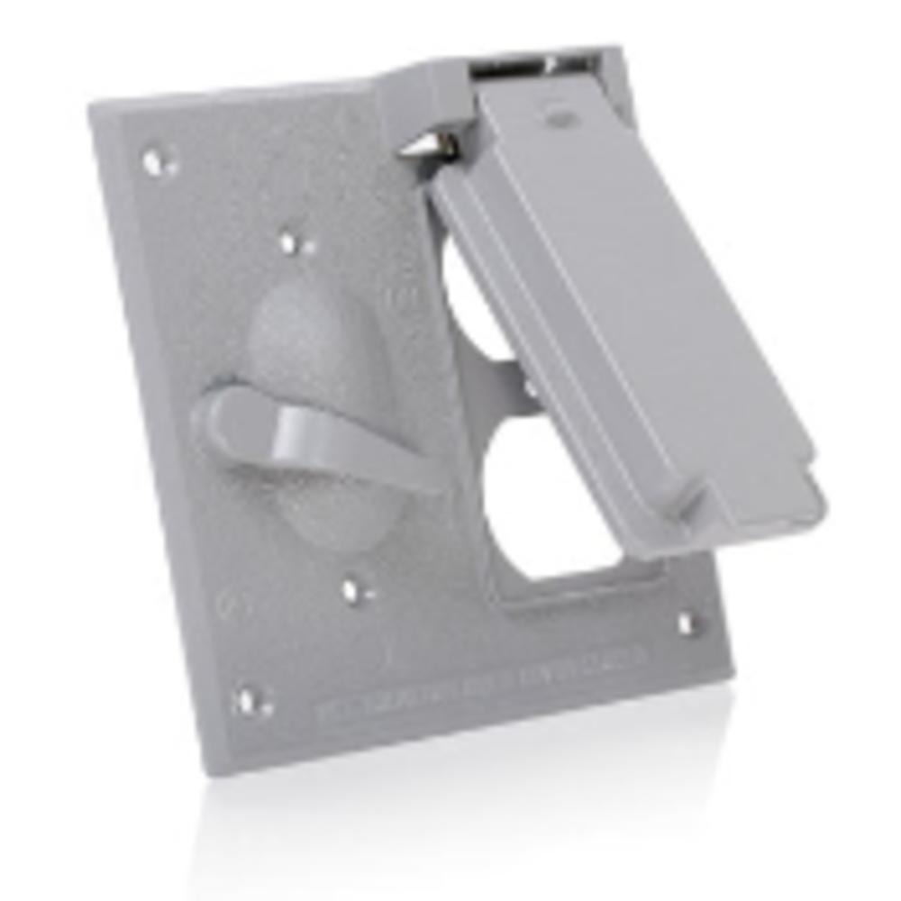 Leviton® WM2SD-GY Outlet Box Cover, 4.71 in L x 4.61 in W x 0.93 in D, Weatherproof Cover, Aluminum