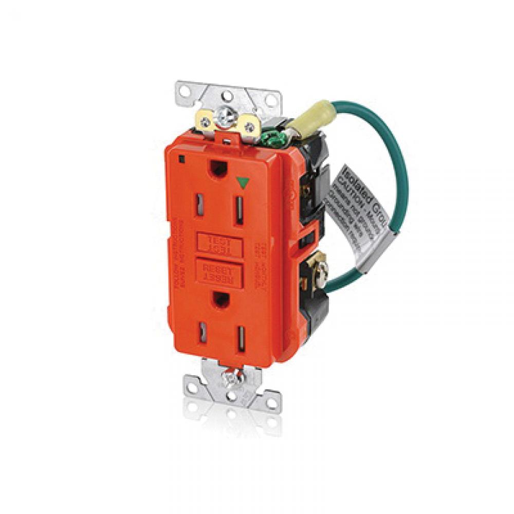 Leviton® X7599-IGO Slim Duplex Lighted Tamper Resistant GFCI Receptacle With Test and Reset Button, 125 VAC, 15 A, 2 Poles, 3 Wires, Orange