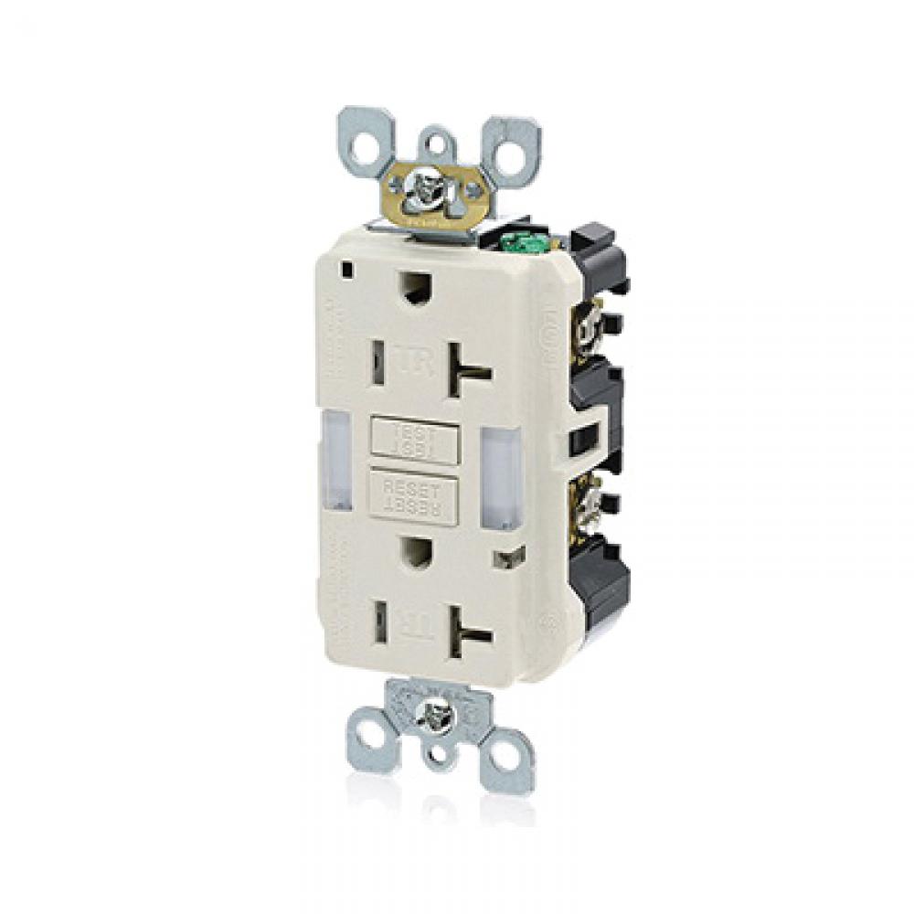 Leviton® X7892-T Slim Guide Light Monochromatic GFCI Receptacle, 125 VAC, 20 A, 2 Poles, 3 Wires, Light Almond