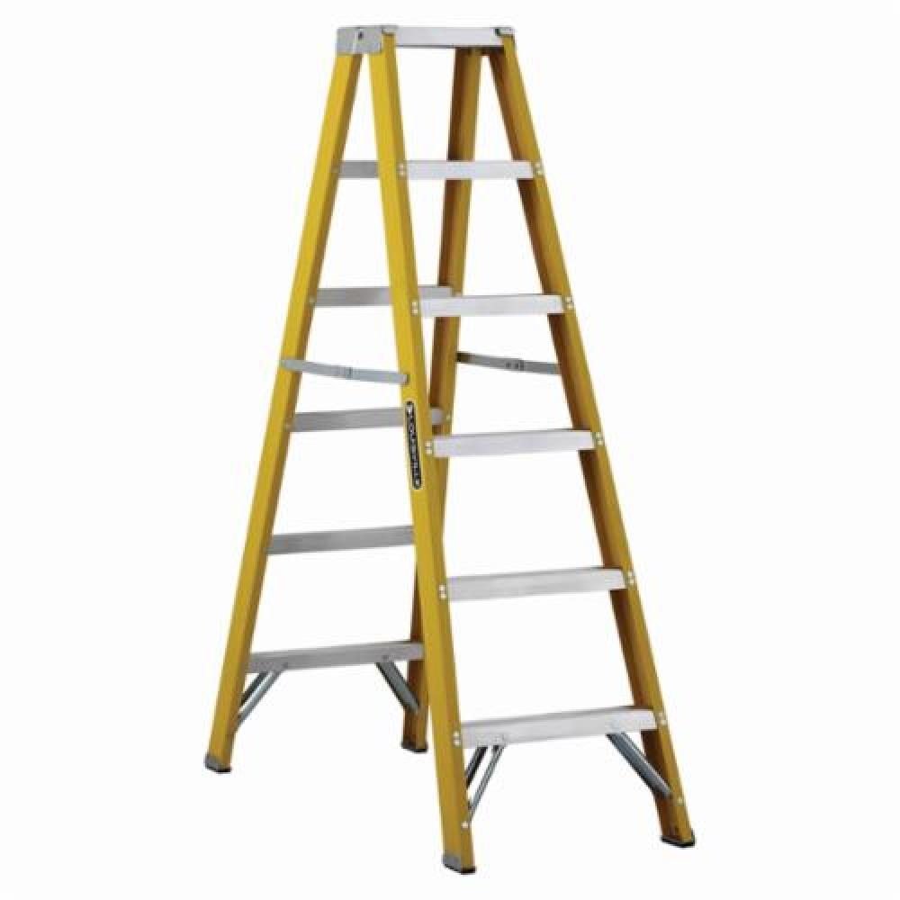 Louisville® FM2006 FM2000 Type I Non-Conductive Twin Front Step Ladder, 6 ft H Ladder, 250 lb Load, 5 Steps, Fiberglass, A14.5