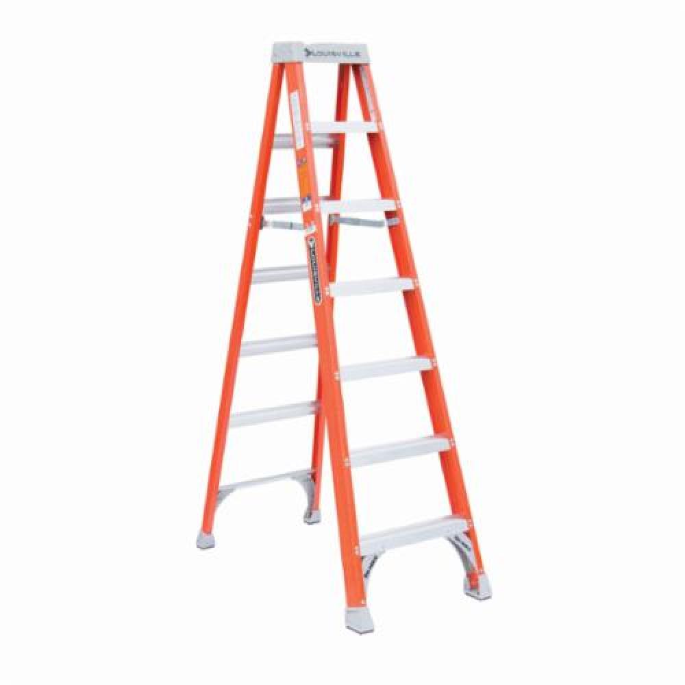 Louisville® FS1507 FS1500 Type IA Non-Conductive Weather Resistant Step Ladder, 7 ft H Ladder, 300 lb Load, 6 Steps, Fiberglass, A14.5