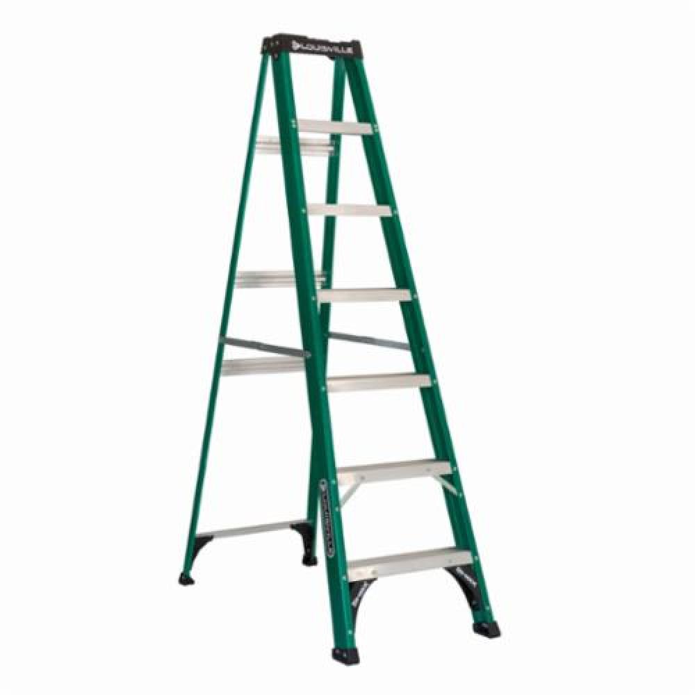 Louisville® FS4007 FS4000 Type II Non-Conductive Weather Resistant Step Ladder, 7 ft H Ladder, 225 lb Load, 6 Steps, Fiberglass, A14.5