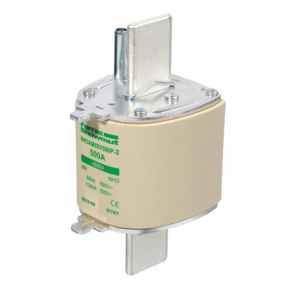 Ferraz Shawmut M216188 NH Series Type aM Size 3 Square Low Voltage Fuse Link With Striker Indicator, 690 VAC, 500 A, Ceramic