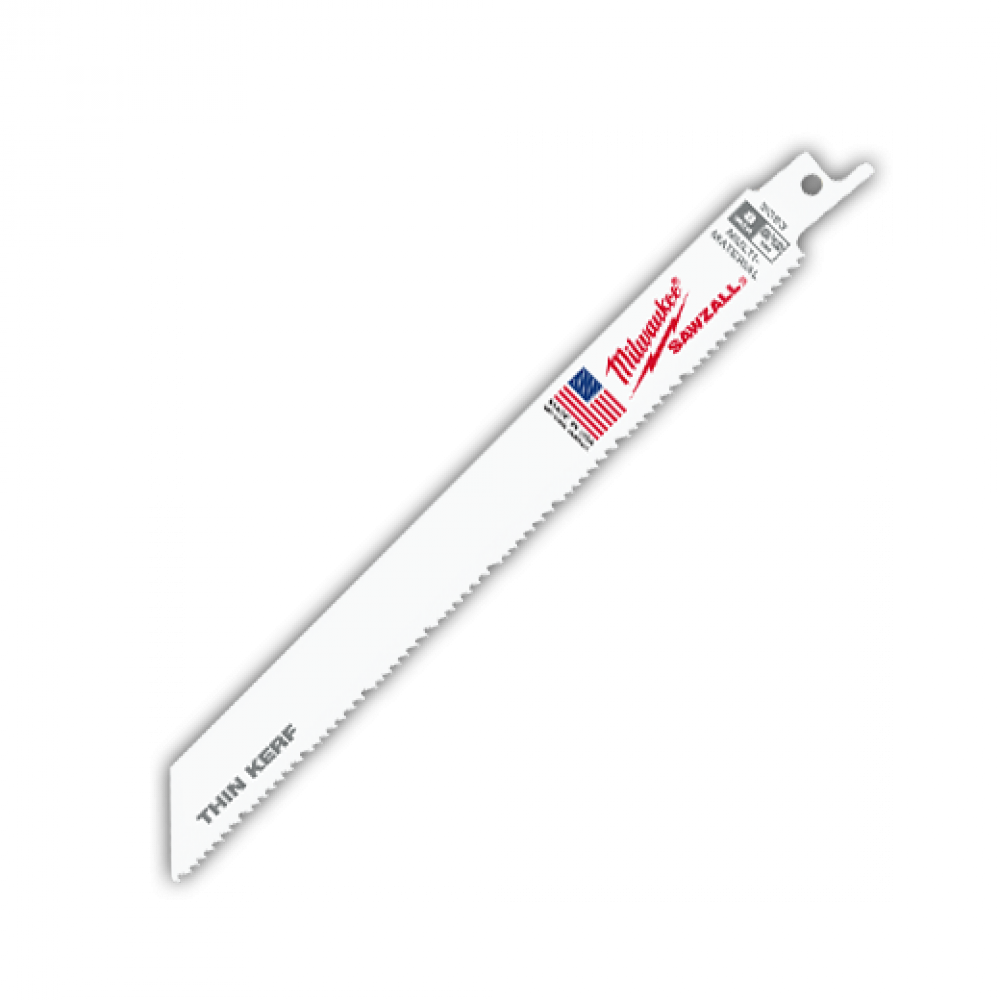 Milwaukee® 48-00-5093 Sawzall® Straight Back Thin Kerf Reciprocating Saw Blade, 8 in L x 3/4 in W, 8/12, Bi-Metal Body, Universal Tang