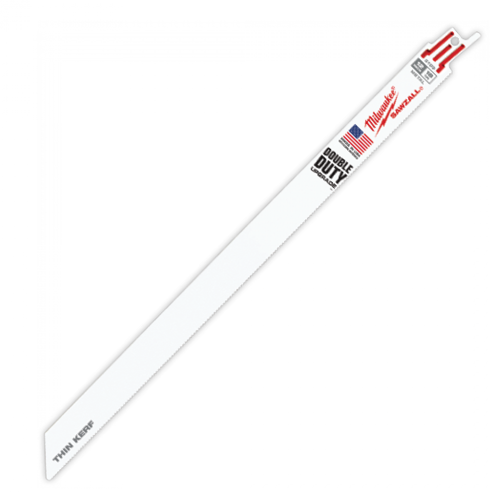 Milwaukee® 48-00-5189 Sawzall® Double Duty Straight Back Thin Kerf Reciprocating Saw Blade, 12 in L x 3/4 in W, 18, Bi-Metal Body, Universal Tang