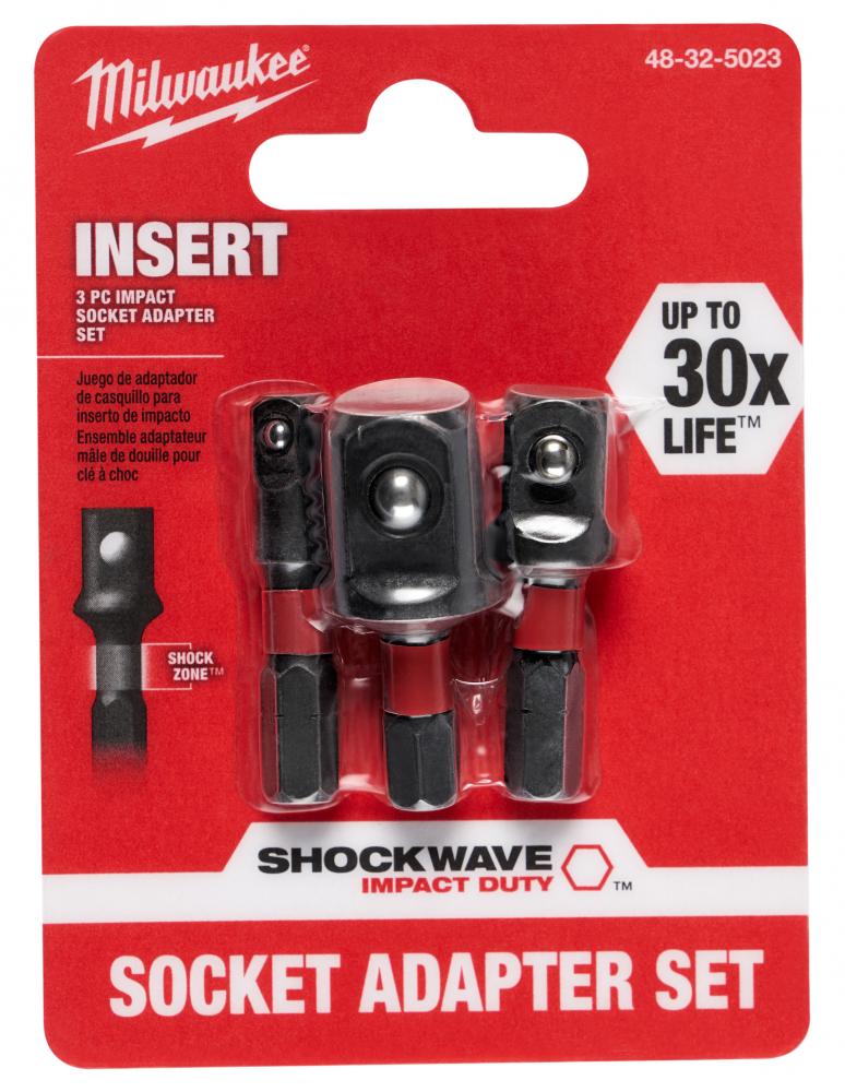 Milwaukee® 48-32-5023 SHOCKWAVE™ 3-Piece Heavy Duty Impact Duty Socket Adapter Set, Yes Impact Rated, Imperial, Hex x Square Drive, Male x Male Adapter, Proprietary Steel, Black/Red