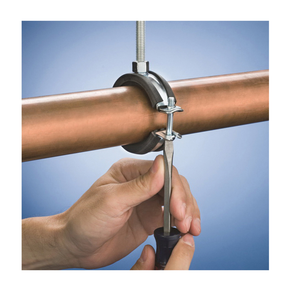 nVent CADDY Superfi® 454008 Standard Duty Pipe Cushioned Clamp, 1-1/2 in Pipe, 180 lb Load, Steel, Electro-Galvanized