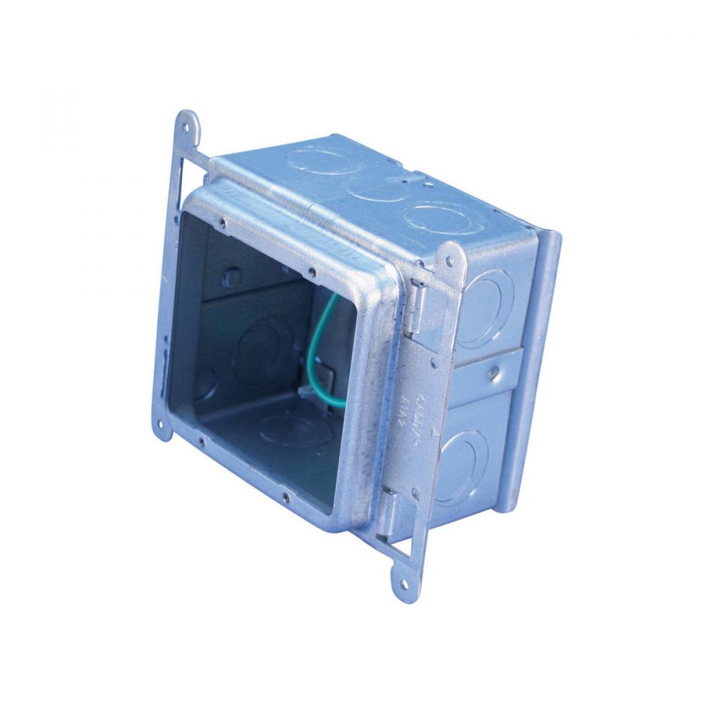 Caddy® A1SA2GS All-In-One Stud-Mounted Electrical Box with 8 in Ground Wire Pigtail, Steel, 2 Gangs, 10 Knockouts