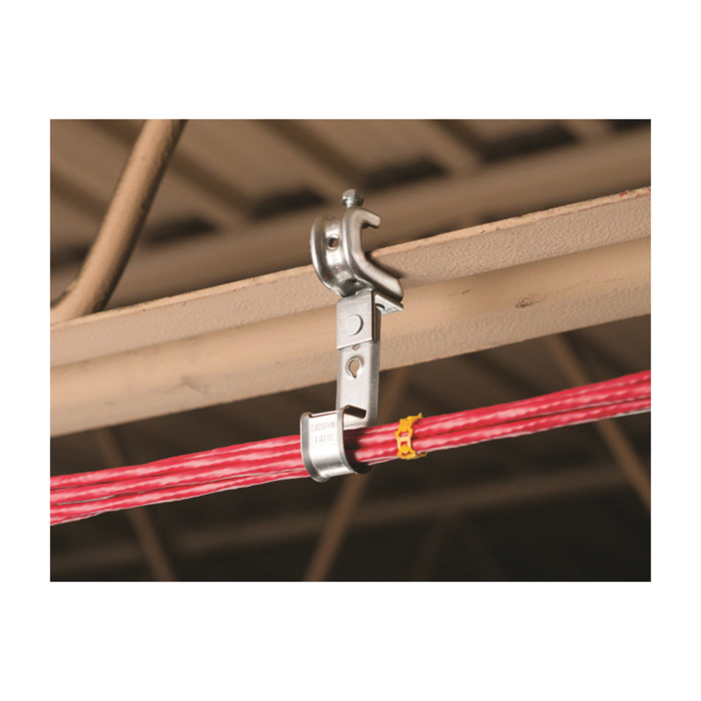 nVent CADDY CAT12BC200B Cablecat J-Hook With BC200 Beam Clamp, 3/4 in Dia, For Use With Cable Support System, Swivel Mount, Steel