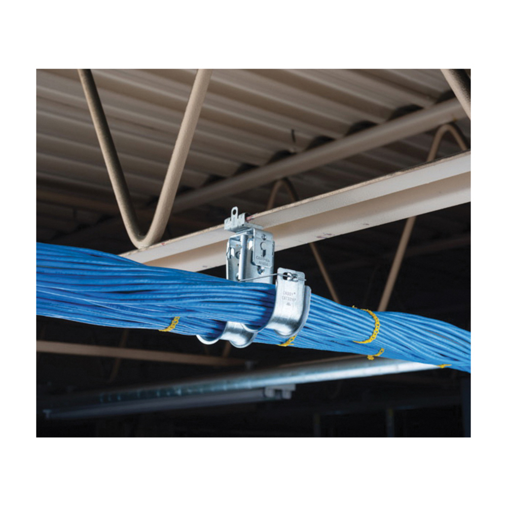 nVent CADDY CAT48HPD1M24 CAT HP 1-Tier Double Sided J-Hook With Hammer-On Flange Clip, 3 in Dia, 100 lb Static Load, For Use With High Performance Cable Support System, Swivel Mount, Spring Steel/Steel