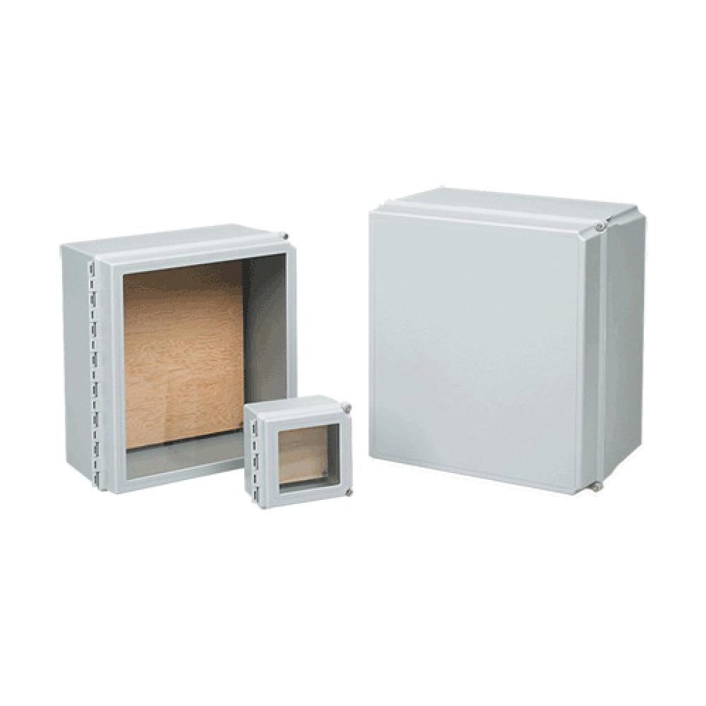 Hoffman Margard™ D181610CHSCFGWP DWS12 Hinge Cover Window Door WiFi Cabinet, 18 in L x 16 in W x 10 in D, NEMA 4X, Fiberglass
