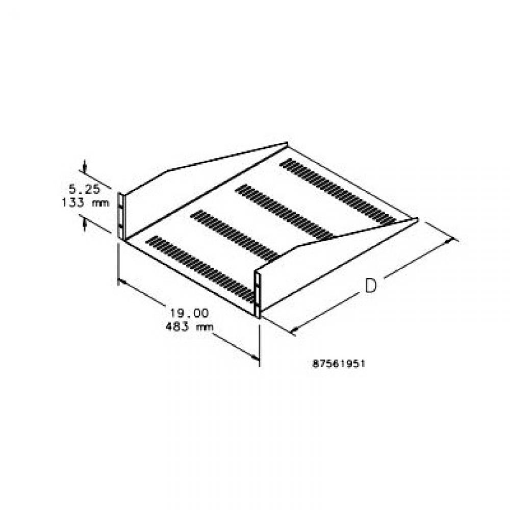 Hoffman EMS1918 Solid Style Rack Mount Shelf, 5-1/4 in H x 19 in W x 18 in D, 3 Rack, Steel