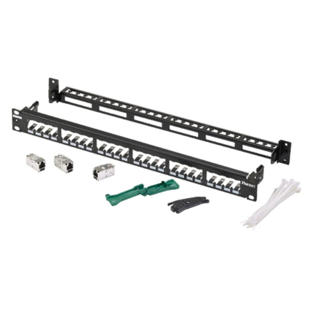 Panduit® Mini-Com® PanNet® CP24WSBBK6TGBL 1RU Flat Shielded Modular Patch Panel Kit, 24 Ports, Cat 6