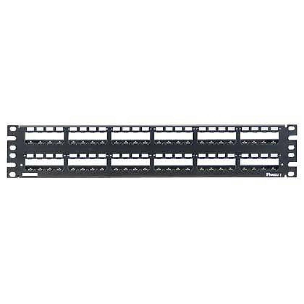 Panduit® Pan-Net® Mini-Com® CP48WSBLY 2RU All Metal Flat Modular Shielded Patch Panel With Black Built-in Strain Relief Bar, 48 Ports, Stainless Steel