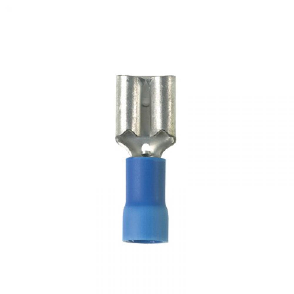Panduit® Pan-Term® DV14-250B-C DV-B Insulated Loose Piece Vibration Resistant Female Disconnect, 16 to 14 AWG Conductor, 0.25 in W x 0.032 in THK Tab, Butted Seam/Funnel Entry Barrel, Brass, Blue