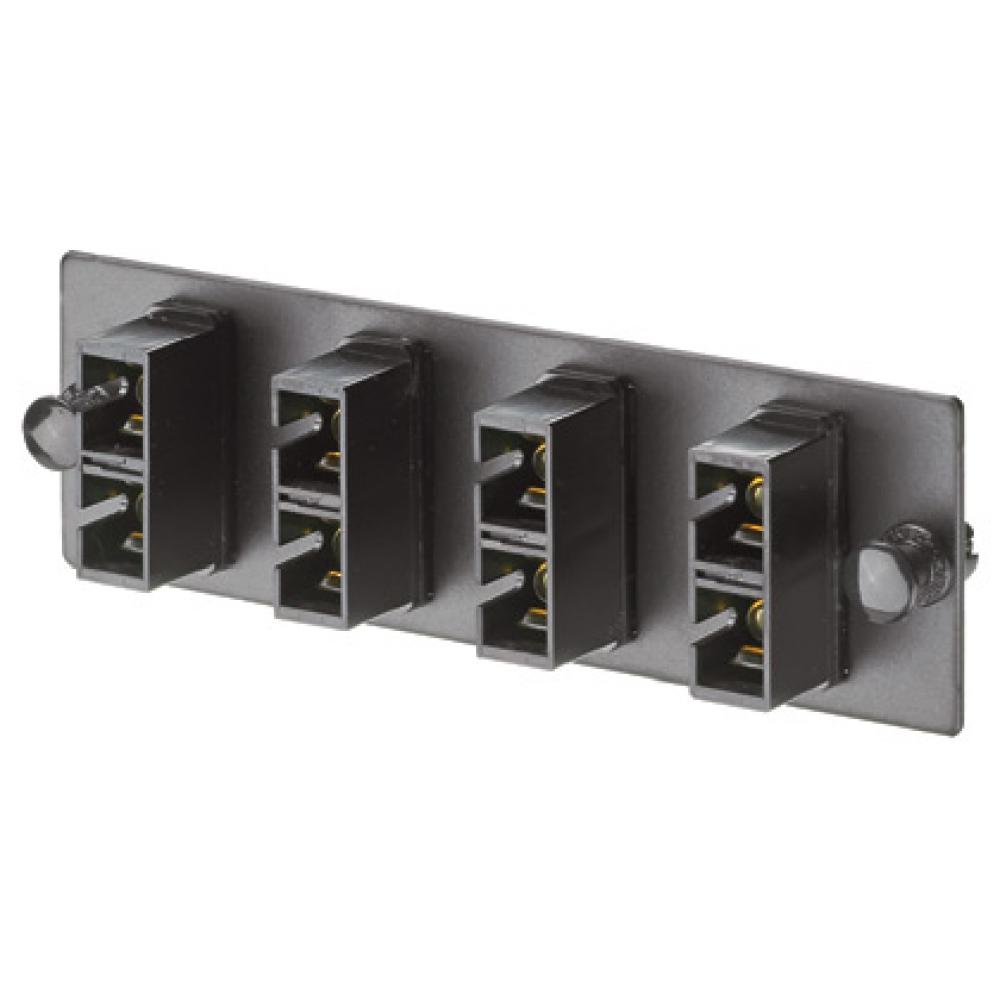 Panduit® Opticom® FAP4WBLDSC Duplex Multi-Mode Loaded Fiber Optic Adapter Panel With (4) Black Adapter, Phosphor Bronze Split Sleeves, SC, OM2 Fiber