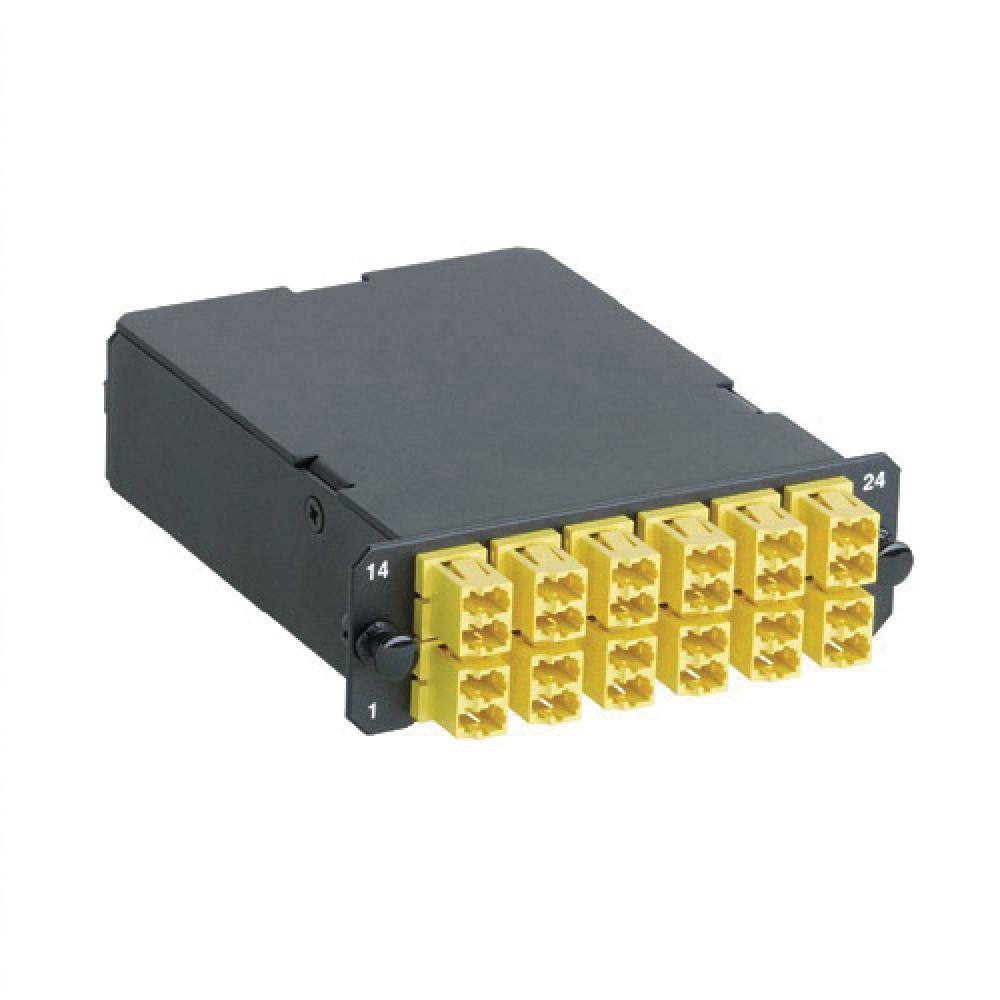 Panduit® Opticom® QuickNet™ FCX-24-10DYL Pre-Terminated Fiber Optic Cassette, LC - Keyed D, MPO Male, 24 Fiber, 10Gig™ OM3 50/125 um Multi-Mode Fiber