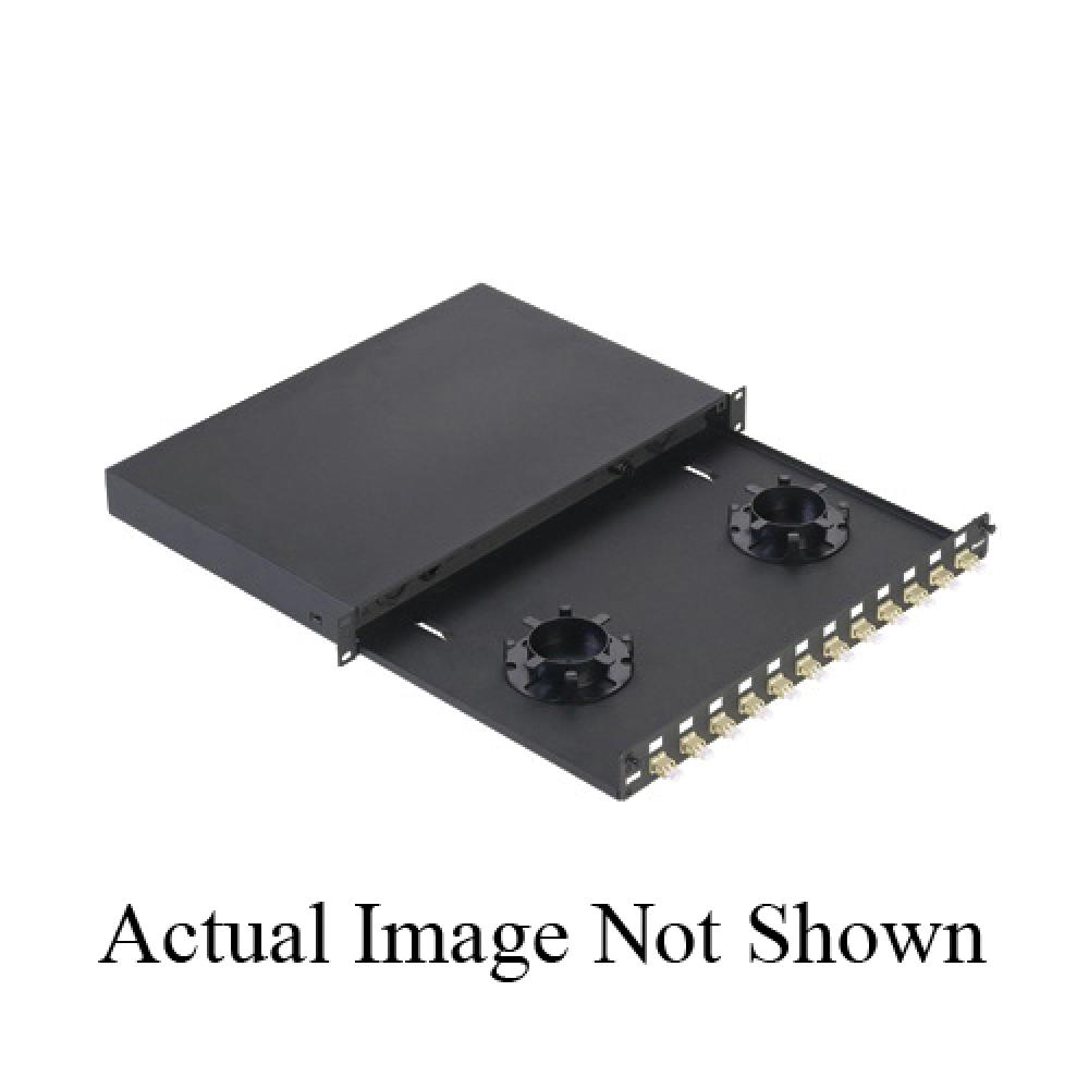 Panduit® NetKey® NKFD1W24BLDLC 2-Piece Slide Out Pre-Loaded Fiber Optic Enclosure With (24) Black Duplex LC Adapters, 1.73 in H x 19 in W x 12.13 in D, Panel Mount, Metal, Black