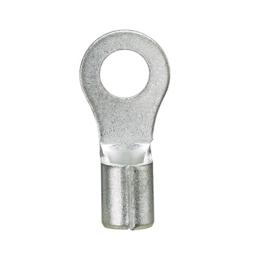 Panduit® Pan-Term® P10-10R-L P Series Loose Piece Non-Insulated Ring Terminal, 14 to 10 AWG Conductor, 0.81 in L, Brazed Seam Barrel, Copper, Metallic
