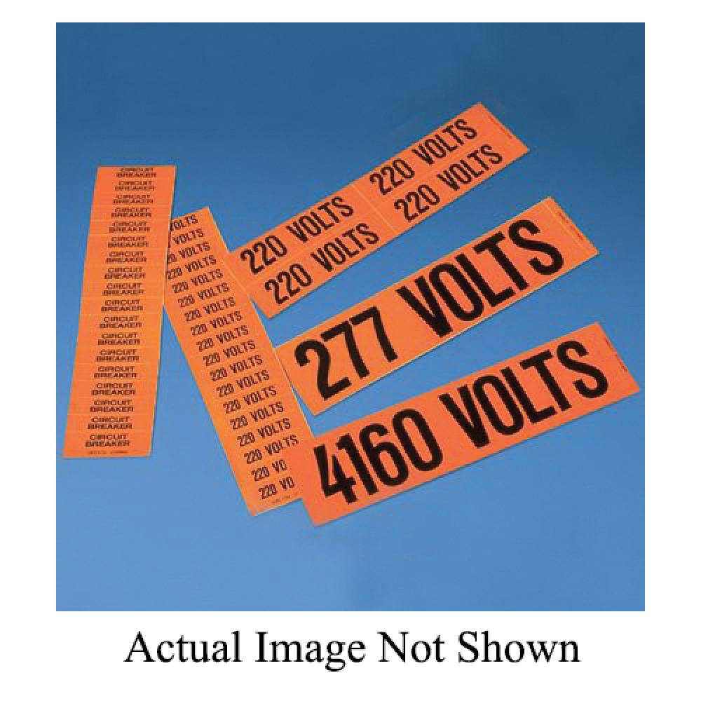 Panduit® PCV-480BY Style B Voltage Marker, 4-1/2 in W, 480 VOLTS, Black/Orange Legend, Orange Background, Vinyl