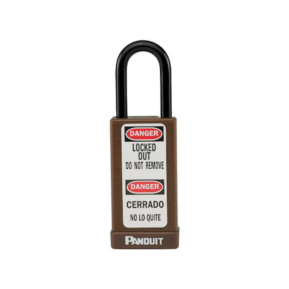 Panduit® PSL-8BR-LB Long Shackle Safety Lockout Padlock, Keyed Alike/Master Key, Brown, Aluminum Body, 0.26 in Dia x 1-1/2 in H x 3/4 in W Steel Shackle, 3 in L Body