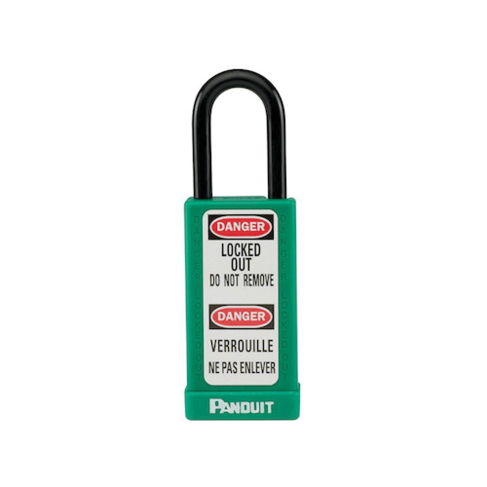 Panduit® PSL-8GR-LB Long Shackle Safety Lockout Padlock, Keyed Alike/Master Key, Green, Aluminum Body, 0.26 in Dia x 1-1/2 in H x 3/4 in W Steel Shackle, 3 in L Body