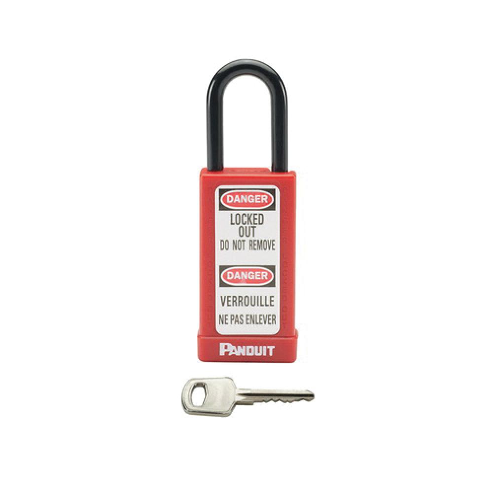 Panduit® PSL-8-LB Long Shackle Safety Lockout Padlock, Keyed Alike/Master Key, Red, Aluminum Body, 0.26 in Dia x 1-1/2 in H x 3/4 in W Steel Shackle, 3 in L Body