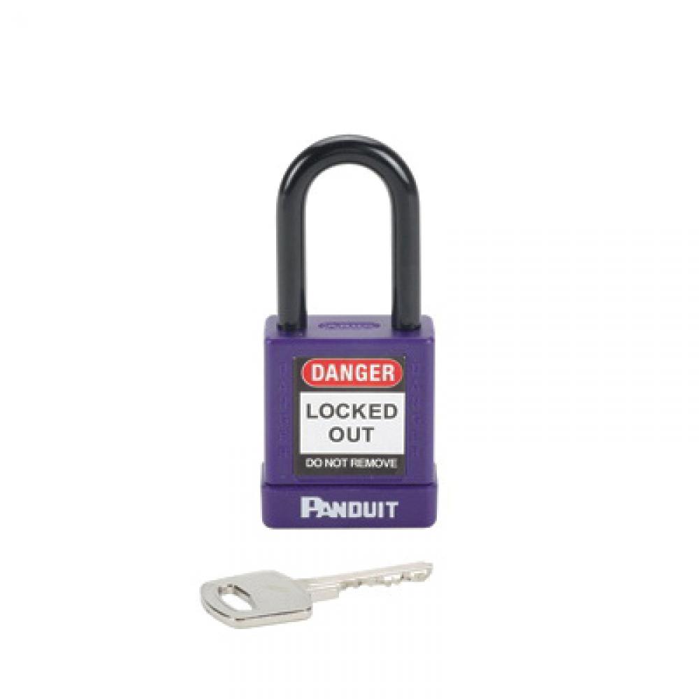 Panduit® PSL-8PU Non-Conductive Short Shackle Safety Lockout Padlock With (1) Key, Alike/Master Keyed Key, Purple, Aluminum Body, 0.26 in Dia x 1-1/2 in H x 3/4 in W Steel Shackle, 1.77 in L Body