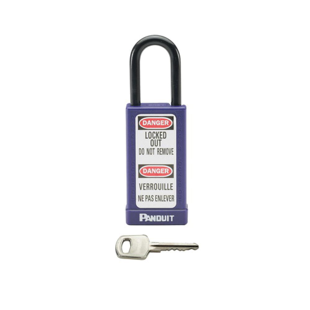 Panduit® PSL-8PU-LB Long Shackle Non-Conductive Safety Lockout Padlock, Alike/Master Key, Purple, Aluminum Body, 0.26 in Dia x 1-1/2 in H x 3/4 in W Steel Shackle, 3 in L Body