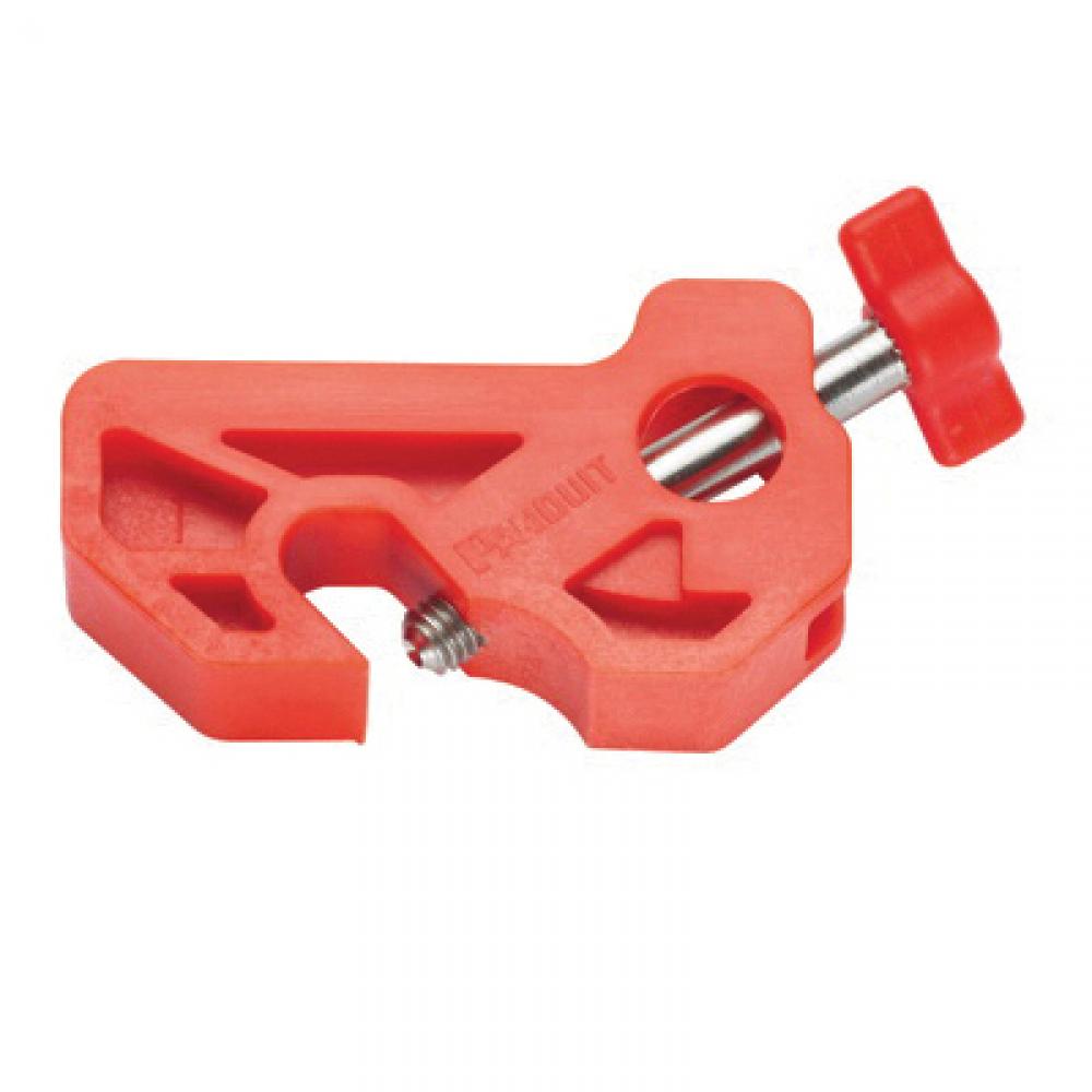 Panduit® PSL-MCBNT No-Tool Circuit Breaker Lockout, For Use With 120 V Miniature Circuit Breakers, 1 Padlocks, 19/64 in Max Dia Padlock Shackle, Nylon/Stainless Steel, Red