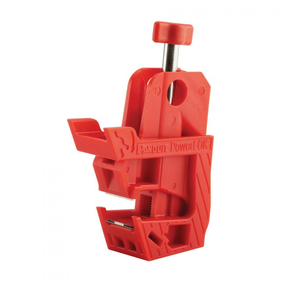 Panduit® PowerLOK™ PSL-PCBNT No-Tool Circuit Breaker Lockout, For Use With 120/277 V Single/Multi-Pole Circuit Breaker, 1 Padlocks, 19/64 in Max Dia Padlock Shackle, Nylon/Stainless Steel, Red
