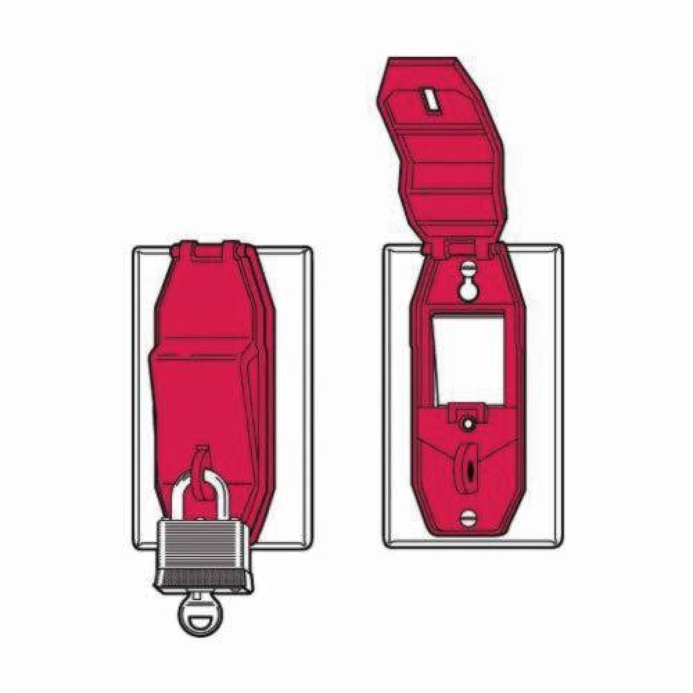 Panduit® PSL-WS1A Lockout Device, For Use With Wall Mounted Toggle/Rocker Switch, Polycarbonate, Red