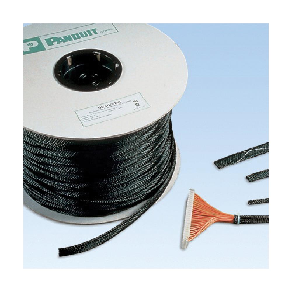 Panduit® SE38P-MR0 Expandable Braided Sleeve, 0.38 in Dia x 1000 ft L Sleeve, Polyethylene Terephthalate, -94 to 257 deg F, Black
