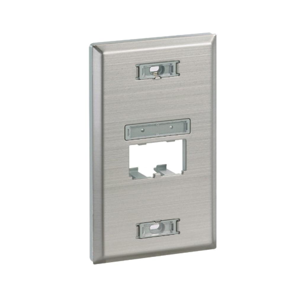 Panduit® Ultimate ID® UICFP2S Flat Vertical Faceplate, 1 Gang, 2 Ports, Mini-Com® Module, Flush Mount, Stainless Steel