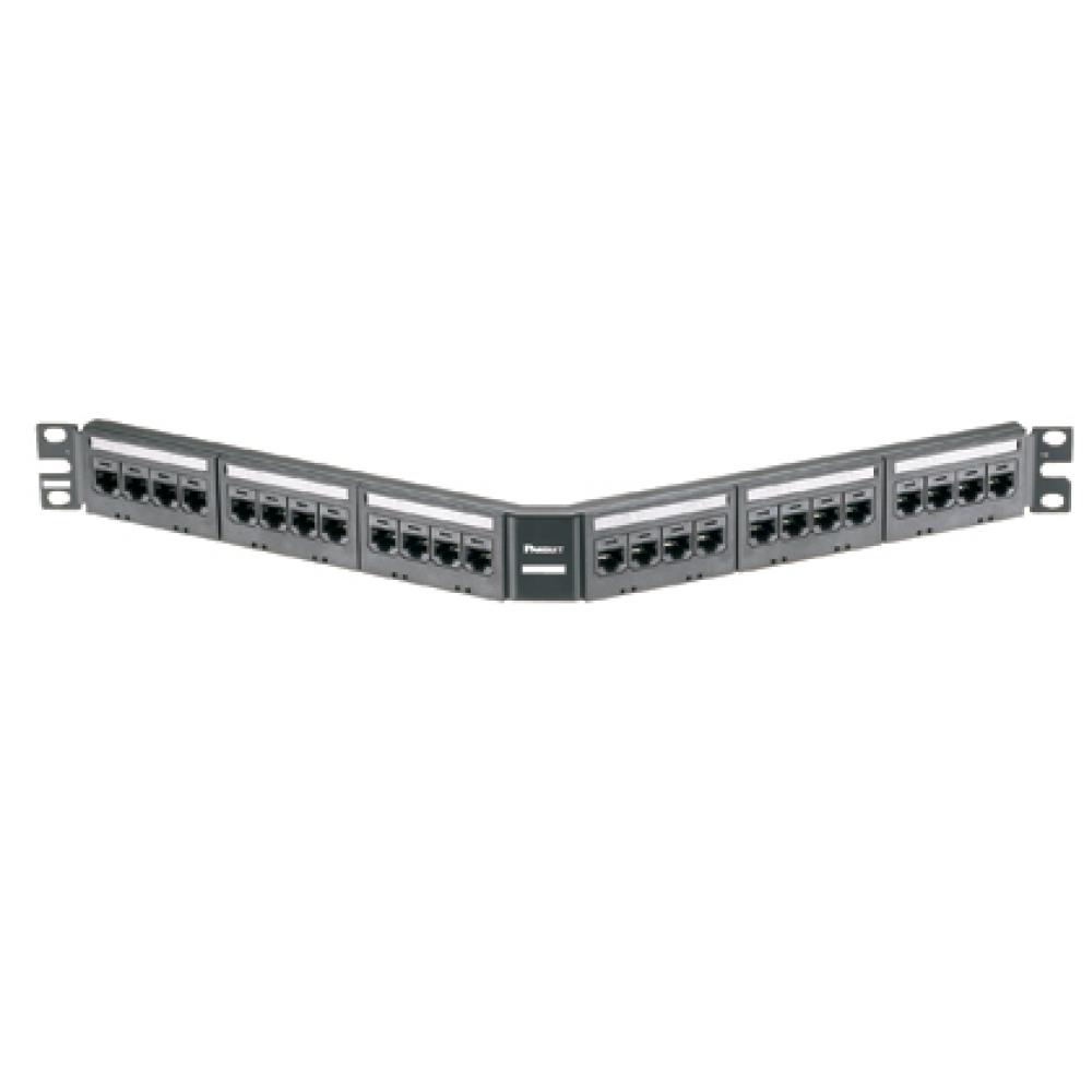 Panduit® Pan-Net® Mini-Com® Ultimate ID® UICMPPKA6G24BL 1RU Type UTP Angled Modular Unshielded Patch Panel Kit, 24 Ports, Cat 6
