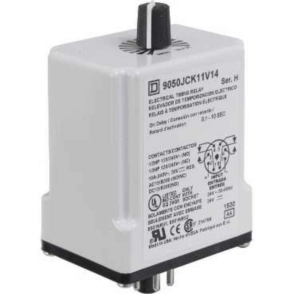 Square D™ 9050JCK11V14 General Purpose Plug-In Timer Relay, 0.1 to 10 sec Time Setting, 240 VAC, 8 Pins, DPDT 2NO-2NC Contact Form