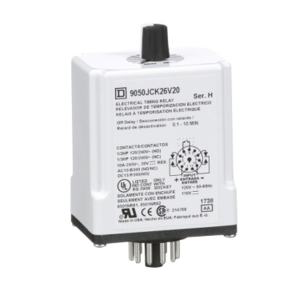 Square D™ 9050JCK26V20 Plug-In Timer, 0.1 to 10 min Time Setting, 240 VAC, 11 Pins, 2NO-2NC DPDT Contact Form