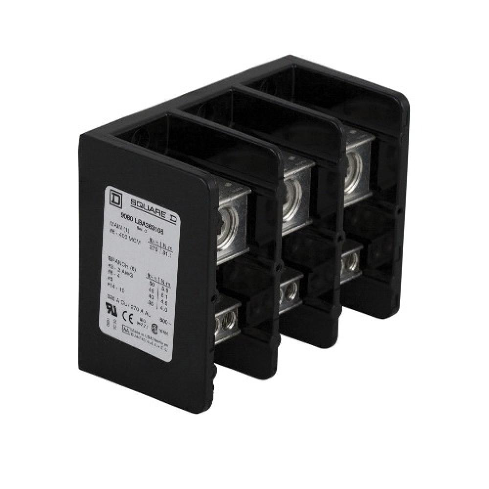 Square D™ 9080LBA365106 Multi Pole Distribution Block, 600 VAC/VDC, 310/380 A, 3 Poles, 4 AWG to 500 kcmil, 14 to 2/0 AWG Wire, Phenolic
