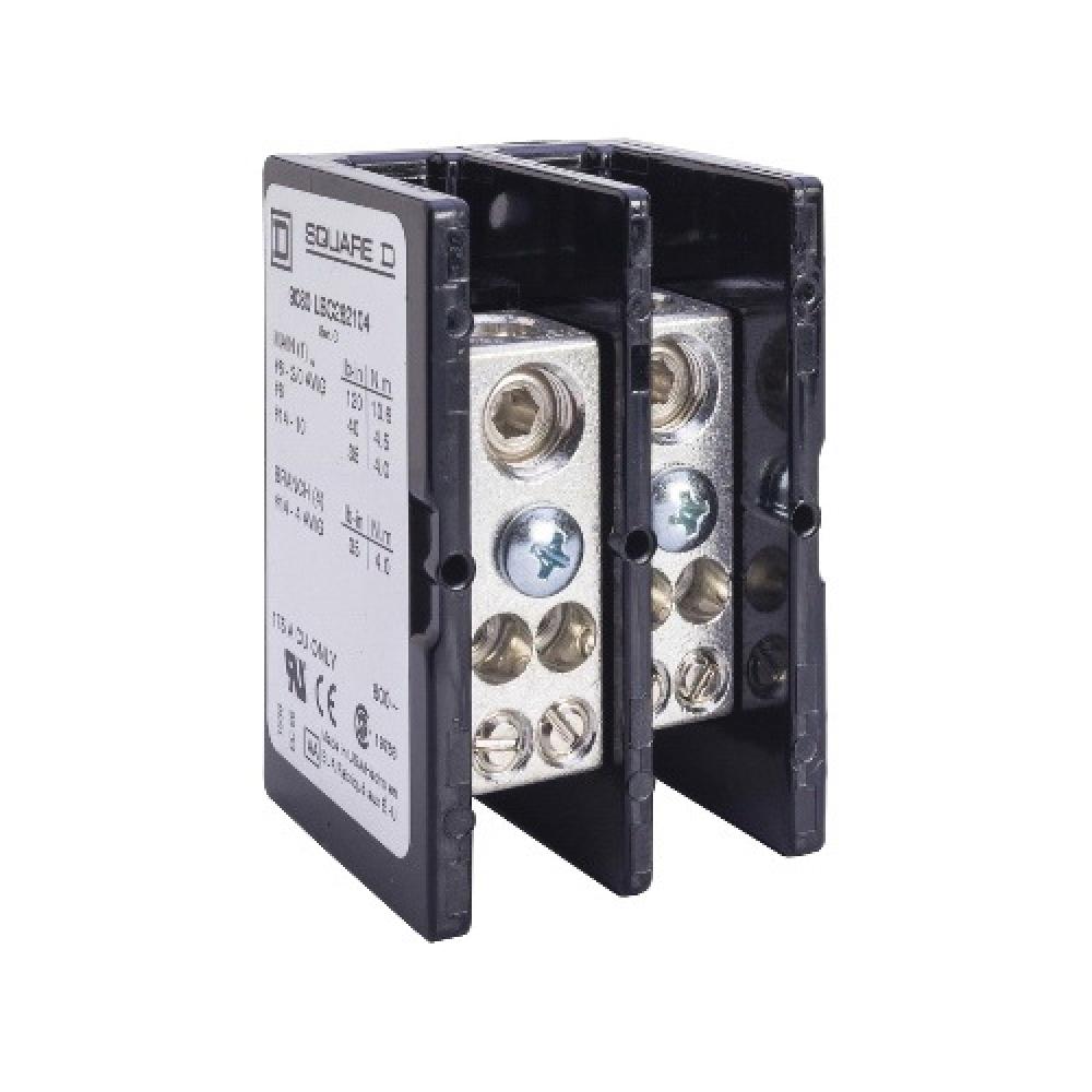 Square D™ 9080LBC262104 Multi Pole Distribution Block, 600 VAC/VDC, 175 A, 2 Poles, 14 to 2/0 AWG, 14 to 4 AWG Wire, Phenolic