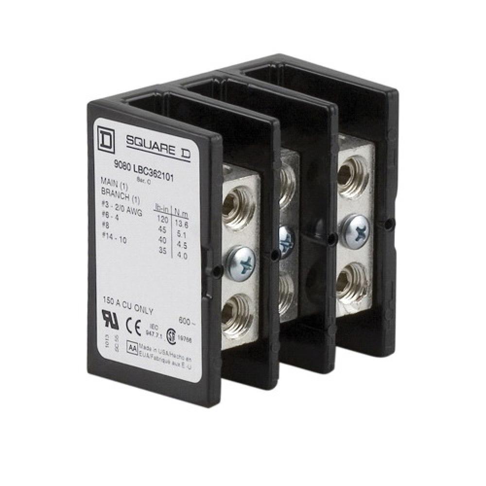 Square D™ 9080LBC362101 Multi Pole Distribution Block, 600 VAC/VDC, 150 A, 3 Poles, 18 to 1/0 AWG Wire, Phenolic