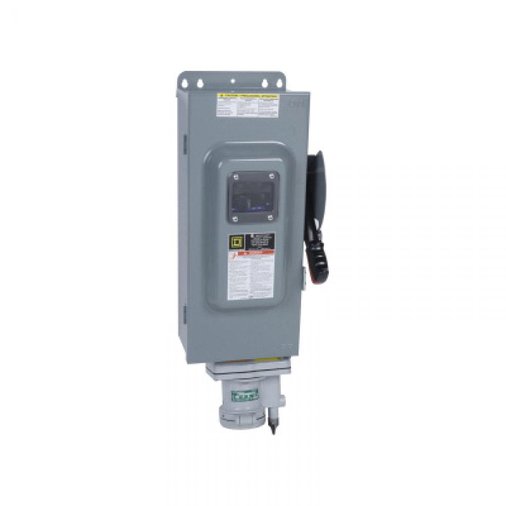 Square D™ H363AWAVW F7 Dusttight Driptight Fusible Iceproof Rainproof Sleetproof Heavy Duty Safety Switch With Appleton™ Interlocked Receptacle, 600 VAC/VDC, 100 A, 75 hp at 600 VAC, Single Throw Contact Form, 3 Poles