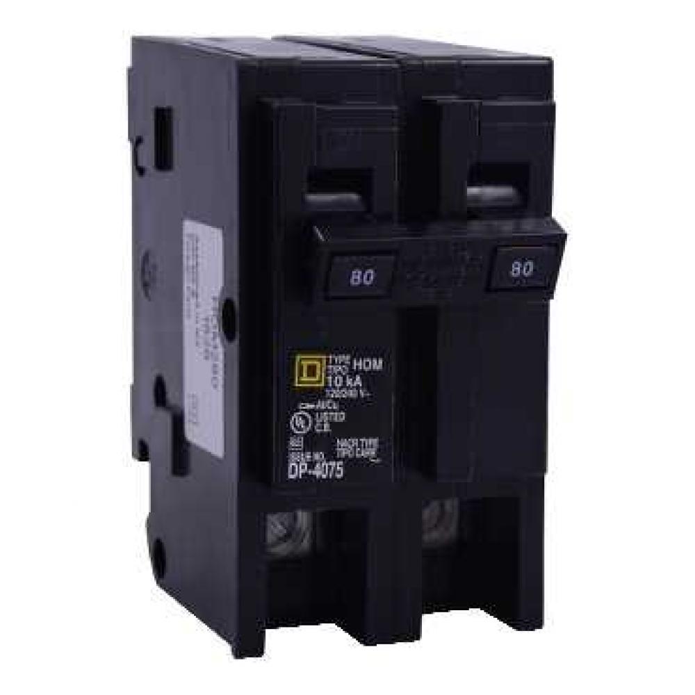 Square D™ Homeline™ HOM280 Standard Miniature Circuit Breaker, 120/240 VAC, 80 A, 10 kA, 2 Poles, Long Time/Instantaneous/Thermal Magnetic Trip