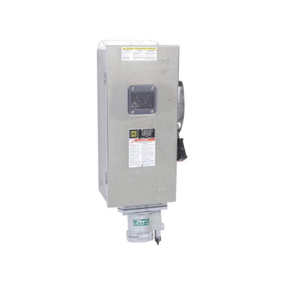 Schneider Electric HU363DSWAVW F7 Corrosion Resistant Dusttight Non-Fusible Watertight Heavy Duty Safety Switch With Appleton™ Interlocked Receptacle, 600 VAC/VDC, 100 A, 100 hp at 600 VAC, TPST Contact Form, 3 Poles