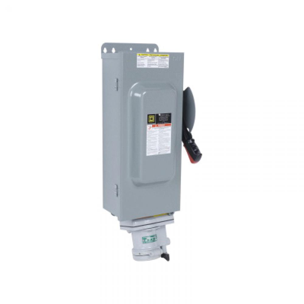 Square D™ HU363WA F6 Dusttight Driptight General Purpose Non-Fusible Heavy Duty Safety Switch With Appleton™ Interlocked Receptacle, 600 VAC/VDC, 100 A, 100 hp at 600 VAC, 3 Poles