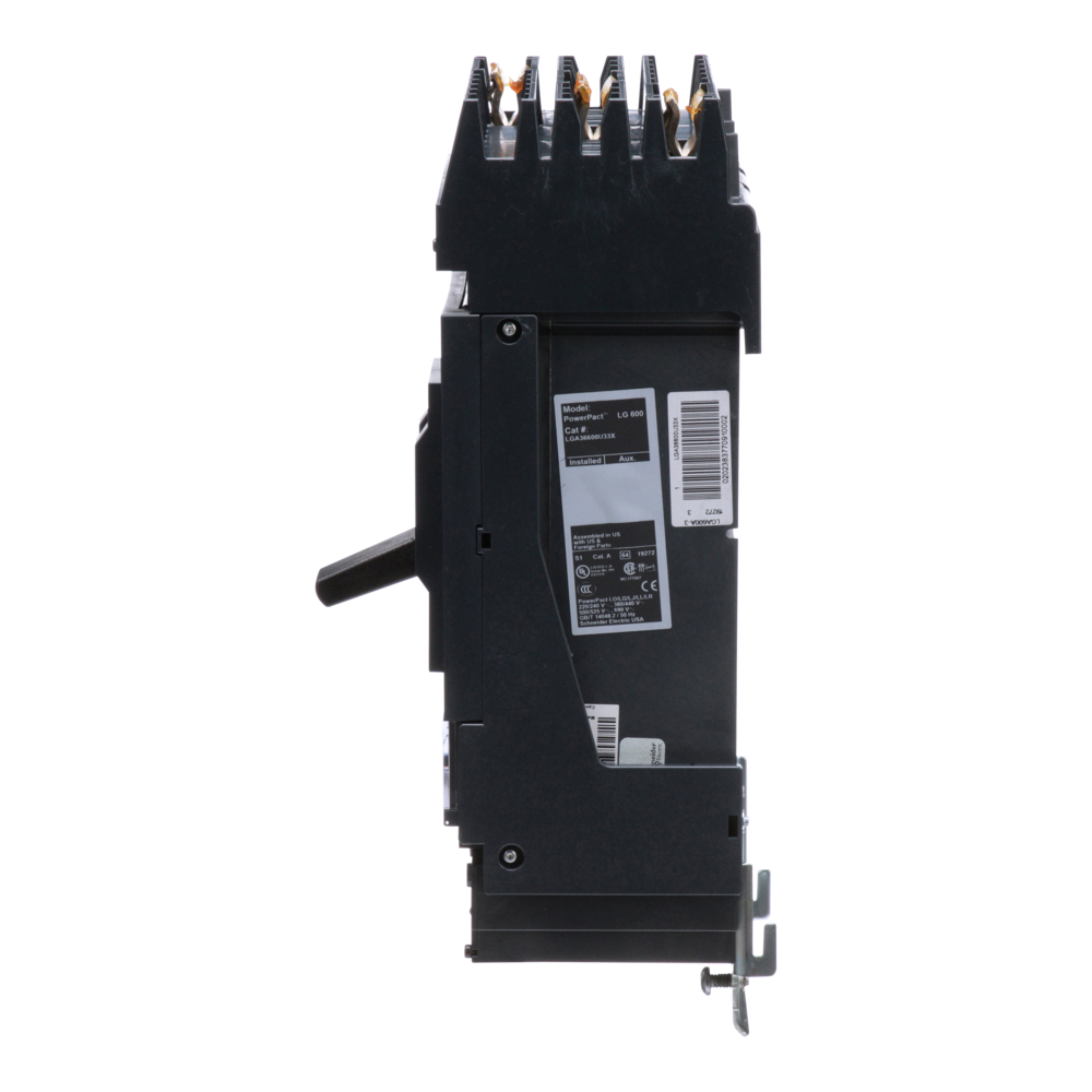 Square D™ I-Line™ PowerPact™ LGA36600U33X Standard L Molded Case Circuit Breaker, 600 VAC, 600 A, 65 kA at 240 VAC/35 kA at 480 VAC/18 kA at 600 VAC Interrupt, 3 Poles, Electronic Micrologic LSI Trip