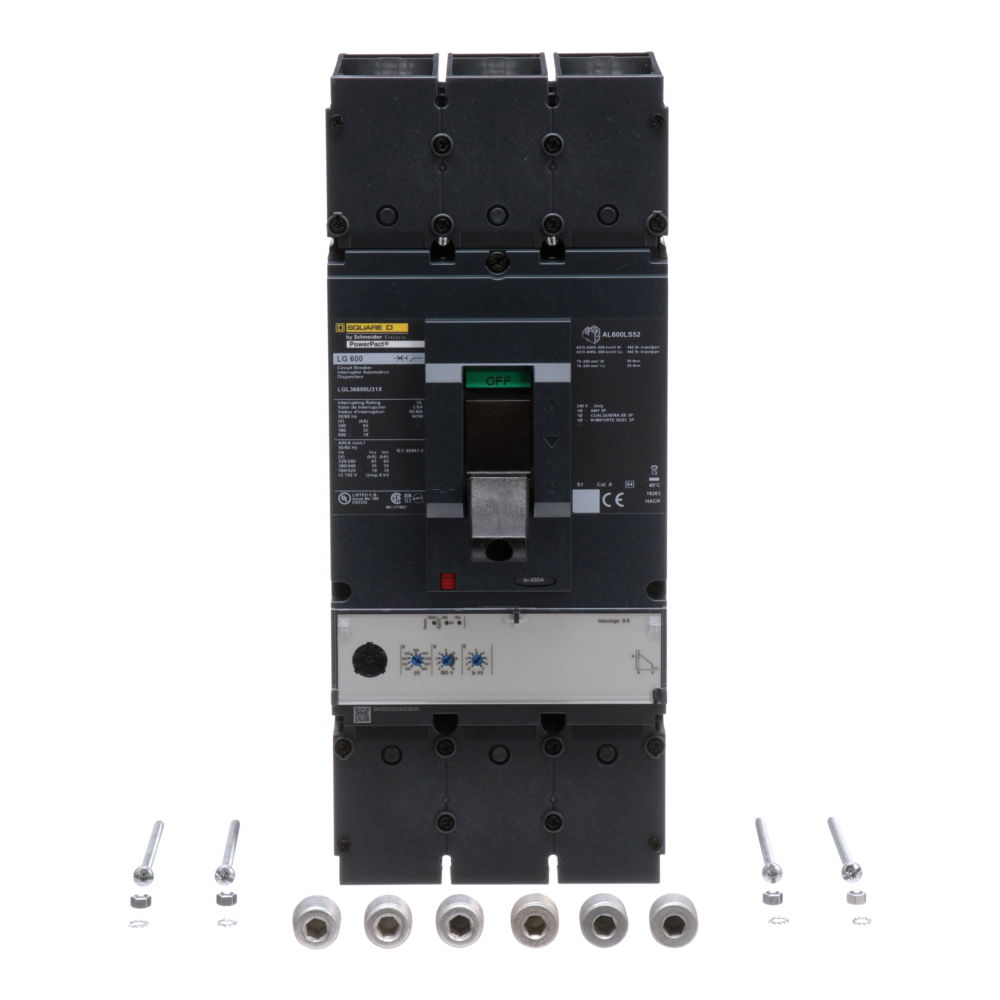 Square D™ PowerPact™ LGL36600U31X 80% Rated Molded Case Circuit Breaker, 600 VAC, 600 A, 18 kA at 600 VAC Interrupt, 3 Poles, Electronic Standard Micrologic 3.3 LI Trip