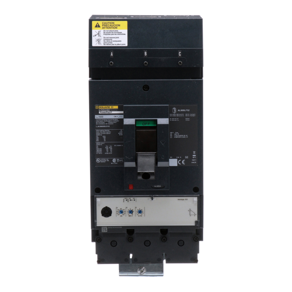 Square D™ PowerPact™ LJA36600U31X Type LJA Solid State Molded Case Circuit Breaker With Micrologic Trip, 600 VAC, 600 A, 25 kA Interrupt, 3 Poles, Electronic Standard Micrologic 3.3 LI Trip