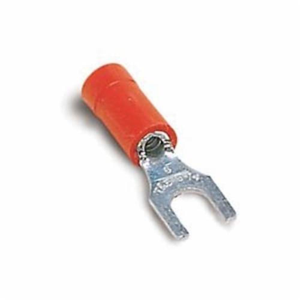 Sta-Kon® 18RA-10F RA Series Insulated Fork Terminal, 22 to 16 AWG Conductor, 0.97 in L, Brazed Seam/Serrated Barrel, Copper, Red