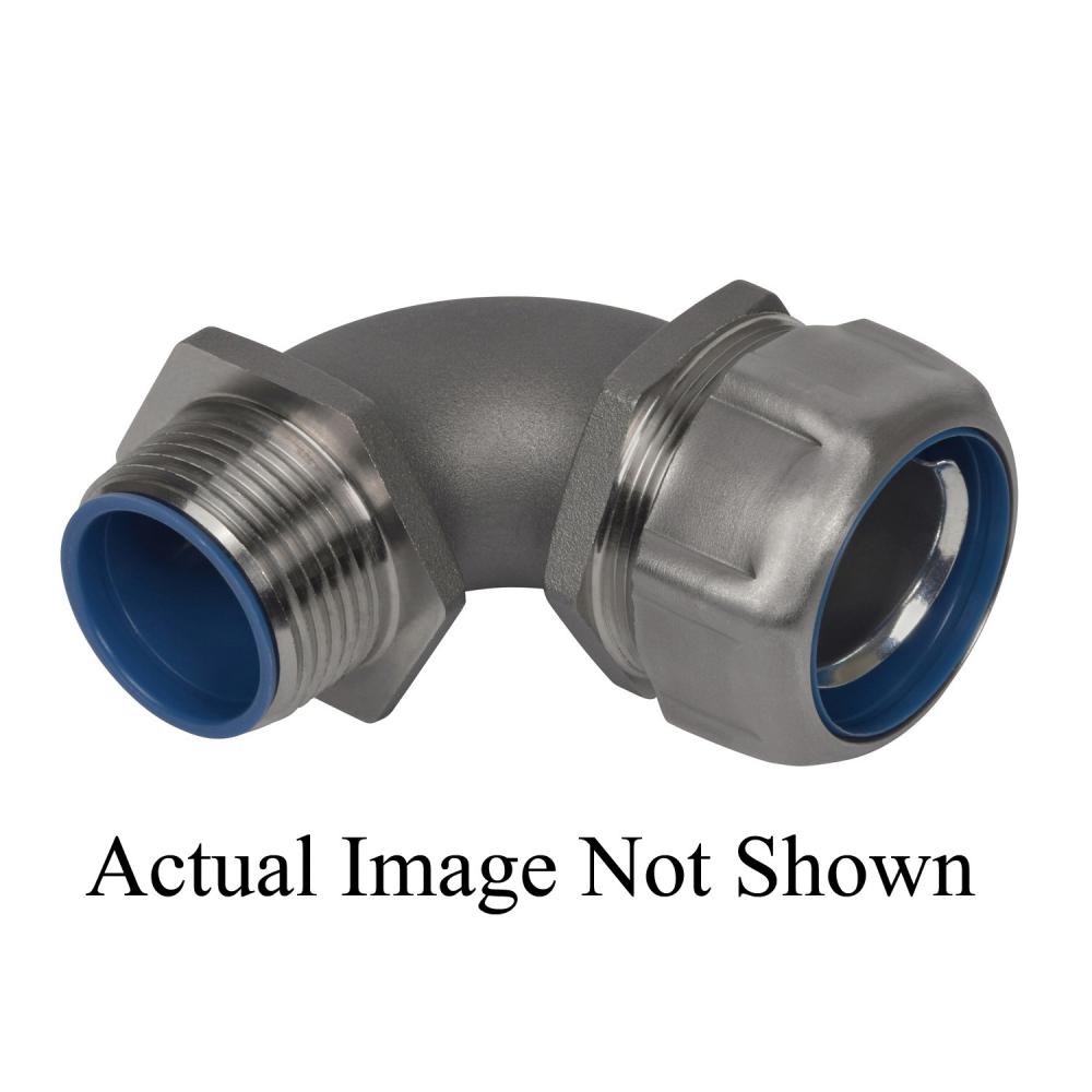 T&B® Industrial Fitting Safe Edge® 5357SST6 Insulated NPT Thread Standard Liquidtight Conduit Connector With Dura Plate Ground Cone, 2 in Trade, 2 in Cable Openings, 90 deg, 316 Stainless Steel