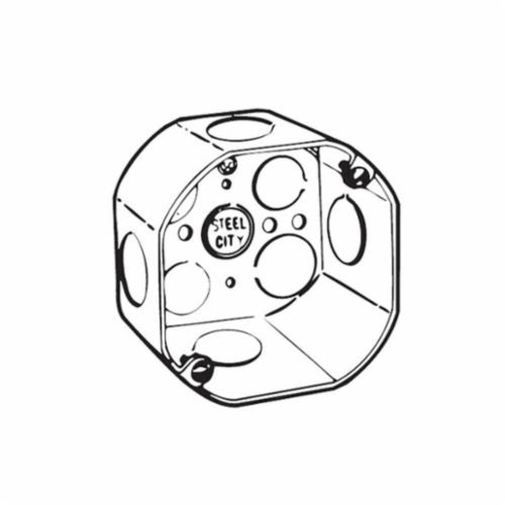 Steel City® 54171-3/4 Octagon Ceiling Box, Steel, 22.5 cu-in, 1 Outlet, 7 Knockouts